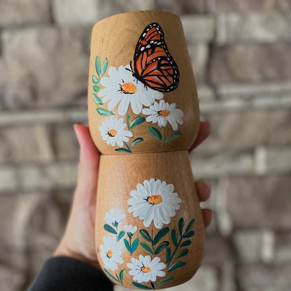 Mate de madera de calden pintado a mano. Incluye bombilla e instrucciones de cuidado y curado.